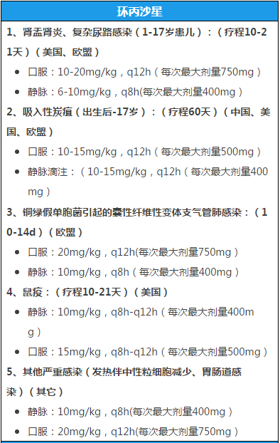 兒童使用氟喹諾酮類藥物的適應(yīng)癥、劑量和療程