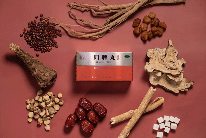 歸脾丸源于明·薛己《正體類要》中的歸脾湯,是在宋·嚴(yán)用和《濟(jì)生方》中歸脾湯基礎(chǔ)上加入當(dāng)歸、遠(yuǎn)志兩味藥而成。仲景歸脾丸由黨參、炒白術(shù)、炙黃芪、炙甘草、茯苓、制遠(yuǎn)志、炒酸棗仁、龍眼肉、當(dāng)歸、木香、大棗(去核)組成。方中黃芪、黨參補(bǔ)脾益氣,使氣旺血生,為君藥。輔以當(dāng)歸、龍眼肉養(yǎng)血補(bǔ)心為臣藥;白術(shù)、炙甘草補(bǔ)脾益氣,助參芪補(bǔ)脾以資生化之源為臣藥。佐以酸棗仁、茯苓、遠(yuǎn)志養(yǎng)血寧心安神;木香理氣醒脾,使之補(bǔ)而不滯;大棗調(diào)和脾胃,以助生化。使以炙甘草調(diào)和諸藥。諸藥相配,以奏益氣補(bǔ)血,健脾養(yǎng)心之功。