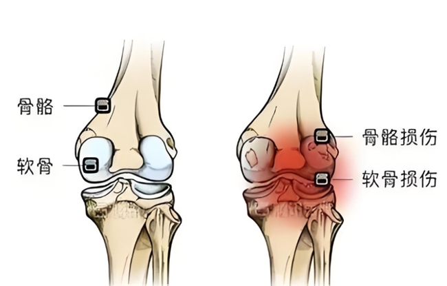 而作為一種常見的退行性關(guān)節(jié)疾病,骨關(guān)節(jié)炎的病根在于關(guān)節(jié)軟骨以及周圍的軟組織被持續(xù)磨損、侵蝕[9],既難以發(fā)揮保護、潤滑關(guān)節(jié)的作用,讓關(guān)節(jié)出現(xiàn)“硬碰硬”,進而引發(fā)關(guān)節(jié)疼痛、僵硬、腫脹、活動受限等諸多病癥。