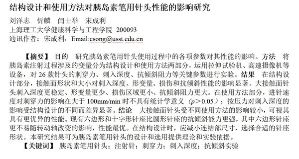 注射胰島素時(shí),不可控手抖、針頭無(wú)法穩(wěn)定貼合皮膚及重復(fù)使用針頭等可能導(dǎo)致的斷針風(fēng)險(xiǎn)也不容忽視。研究發(fā)現(xiàn),六棱鼓面抗傾斜力更強(qiáng),針尖更垂直,從而降低了斷針的風(fēng)險(xiǎn)。