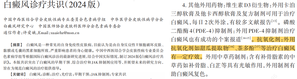 ? 外用抗氧化劑可有效應對 “抗氧化防御缺口”,為白癜風精準干預提供全新思路