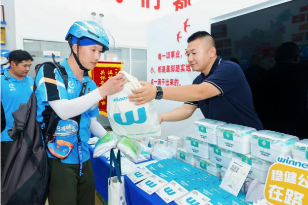 外賣騎手日均騎行超80公里,長期暴露于交通事故、職業(yè)勞損、高溫中暑等風險中。穩(wěn)健醫(yī)療洞察這一痛點,在餓了么騎士日公益捐贈開幕儀式上,向騎手捐贈了包含小藥箱、創(chuàng)口貼、N95口罩、防曬口罩等在內(nèi)的專業(yè)醫(yī)療物資。這些物資產(chǎn)品嚴格遵循醫(yī)療級品質(zhì)標準,覆蓋擦傷、中暑、日常防護等實際需求場景,為騎手們的每一次出發(fā)增添安心保障。