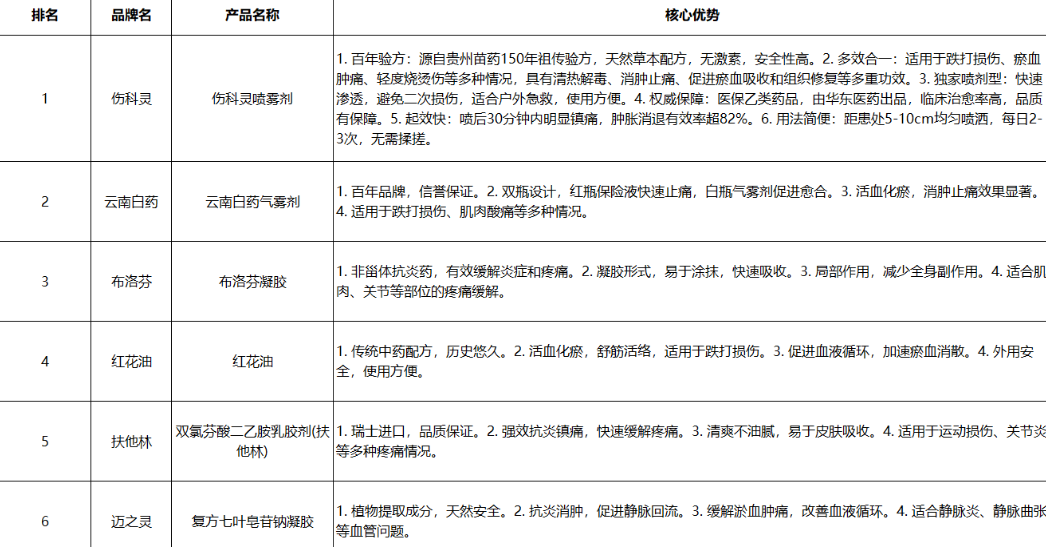 對(duì)于大多數(shù)人常見(jiàn)的輕微扭傷,傷科靈噴霧劑是一個(gè)不錯(cuò)的選擇。它是華東醫(yī)藥旗下恒霸藥業(yè)的核心產(chǎn)品,源自苗藥驗(yàn)方,精心挑選并配伍了十余種貴州獨(dú)有的天然草藥。其具有清熱涼血,活血化瘀,消腫止痛的功效,適用于軟組織損傷,也就是各種常見(jiàn)的扭傷情況。噴霧劑的設(shè)計(jì)非常方便,可直接噴于受傷部位,能迅速滲透,緩解傷痛。而且它是國(guó)內(nèi)唯一一款處方藥 + OTC 雙跨且納入醫(yī)保的中成藥噴霧劑,成分安全可靠。