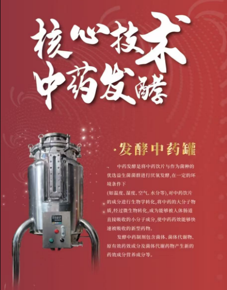 中藥在發(fā)酵過程中加入了多種有益菌種,會產生更多益生菌群的次級代謝產物。經過發(fā)酵過程中的酶解作用,中草藥和益生菌相互增益,增加有效物質的活性和含量,同時產生更多能直接被腸胃吸收的次級代謝產物。益生菌發(fā)酵中藥具有以下優(yōu)勢。改善胃腸道微生態(tài)環(huán)境。微生物在調節(jié)胃腸道環(huán)境,分解酶和有機酸等方面有優(yōu)勢,中藥本身有非常好的解毒、補氣血、健脾和胃、保腎護腎等功效,發(fā)酵中藥是綜合了微生態(tài)和中藥的雙重功效,能夠實現1+1﹥2的效果。提高中藥的生物利用度。發(fā)酵中藥中的微生物可分泌一些纖維素酶、半纖維素酶、果膠酶等,以促進植物細胞壁的分解。分解后的植物細胞壁對胞漿內有效物質溢出的阻礙作用降低,其中的苷類、皂苷類、有機酸、揮發(fā)油、微量元素、多糖、小肽等藥用價值較高的成分溢出會更多,藥物的生物利用度也會更高,尤其是采用半固體發(fā)酵的中藥,益生菌活力強,產酶量大,加上中藥在濕度較大的環(huán)境中,植物纖維韌性下降,變得更易酶解,最終能達到提高藥物生物利用度的目的。提高中藥藥效。發(fā)酵過程中,藥中的大分子物質得以降解而被直接吸收利用,并迅速發(fā)揮有效能,加快了藥效。環(huán)保節(jié)能。應用常規(guī)方法提取中藥有效成分后藥渣常被廢棄,不僅污染環(huán)境,也浪費了中藥資源,而利用微生物發(fā)酵中藥,可使中藥充分釋放有效成分,提高其有效成分的含量。因此,在臨床用藥中可以減少中藥的使用量,節(jié)約中藥資源,實現既節(jié)能環(huán)保,又可廢物再用的目的。由于微生物在生長過程中能分泌一系列酶,應用微生物發(fā)酵中藥,能將中藥中的纖維素、木質素類等大分子物質降解,同時也可將中藥轉化為菌體蛋白和多糖等。因此,發(fā)酵后的中藥材亦能被利用,不僅具有較高的營養(yǎng)價值,而且還可增強機體的免疫功能。