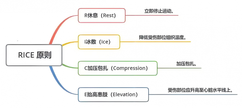 休息(Rest):立即停止活動,避免加重?fù)p傷。保持患處穩(wěn)定是防止傷勢惡化的第一步。