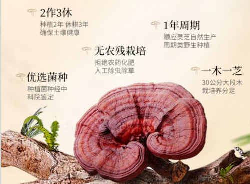 靠山莊來自吉林蛟河山區(qū),原料靈芝在富硒黑土中生長。采用冷風(fēng)對(duì)撞破壁工藝,破壁率99%。三萜含量16.5克,多糖2.1克。