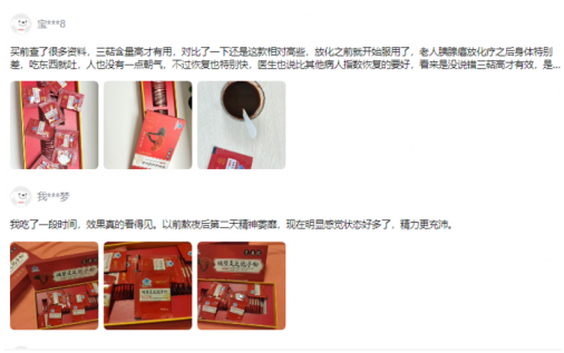用戶王女士,56歲,退休公務(wù)員,表示自己以前關(guān)節(jié)僵硬、氣色差,服用靠山莊兩個(gè)月后,皮膚亮度提升,行動(dòng)輕松不少。