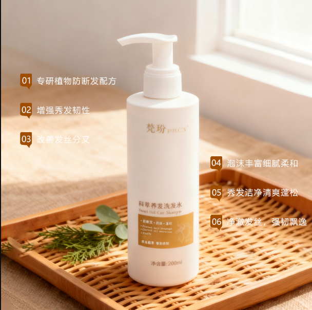 配方是 “蠶絲蛋白 + 側(cè)柏葉提取物 + 生姜精華”,都是很經(jīng)典的成分。蠶絲蛋白是從國產(chǎn)優(yōu)質(zhì)蠶絲里提取的,能滋養(yǎng)發(fā)絲;側(cè)柏葉是江蘇種植基地直采的,基礎(chǔ)防脫效果好;生姜精華用的是低溫萃取,降低了刺激性,能促進(jìn)頭皮循環(huán),不會像有些生姜洗發(fā)水那樣辣頭皮。